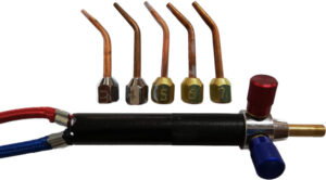 The TAURUS MICRO BRAZING TORCH is designed for precision joining of various metals. It is ideally suited for manufacturing and repairing jewelry and electronic products, for hobby making, craft work, sculpturing and glass blowing. The torch is precision engineered, manufactured from quality light materials for easy maneuverability. The tailpieces are 3/8″ threaded left handed (red colour coded) for the fuel-gas connection and right handed (blue colour coded) for the oxygen connection.