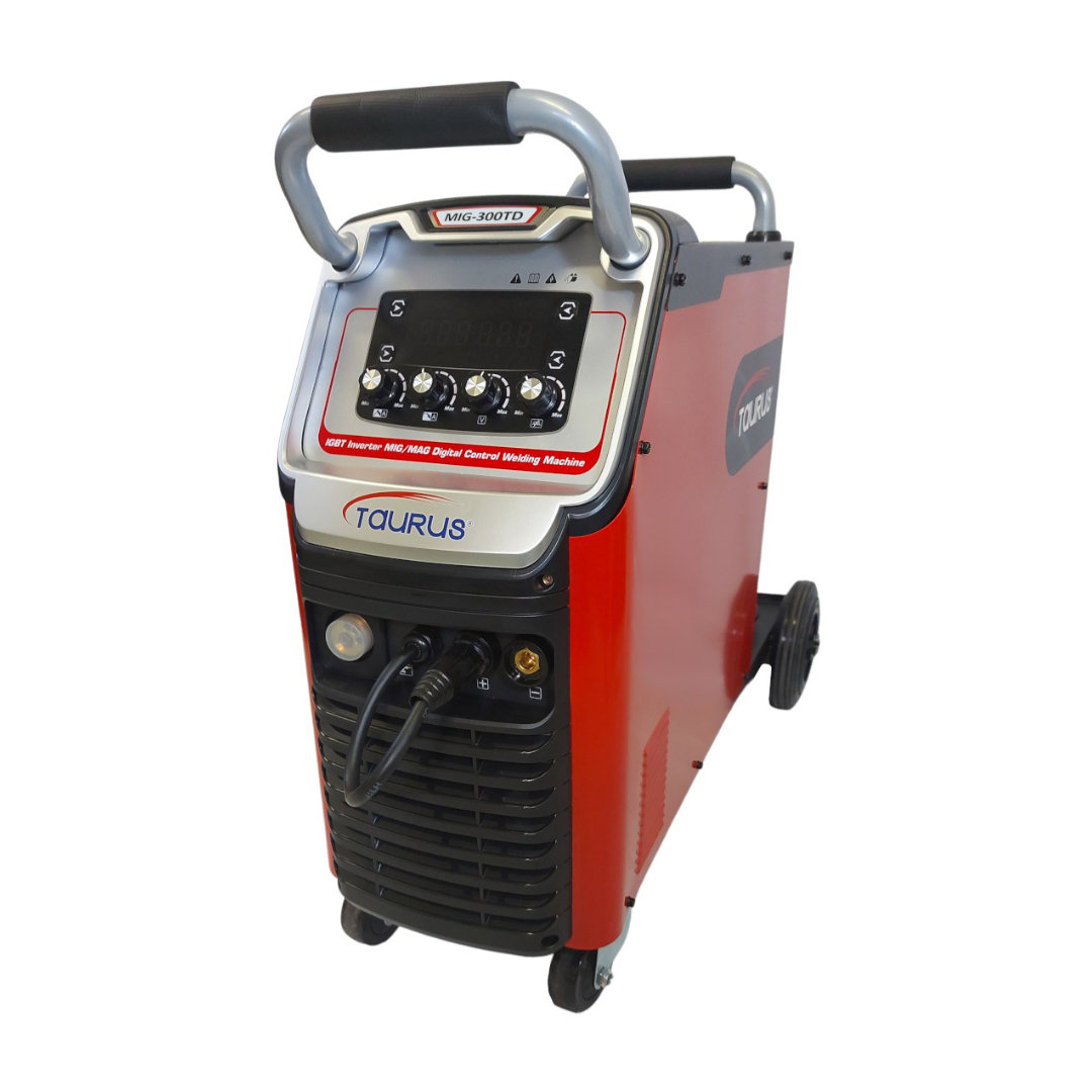This Taurus MIG-300TD welding machine is a high performance semi-automatic welding machine for CO2 and mixed gas shielded welding. It can weld low carbon steel, low alloy steel, stainless steel, galvanized sheet, copper and other components. It uses Φ0.8-Φ1.2mm diameter stainless steel welding wire, steel wire, gasless wire and other solid wire. The advanced power input system will detect and handle a voltage drop or a spike of up to 15%. This will not only safeguard the machine against damage resulting from erratic power supply, but will also ensure smooth, uninterrupted operation. It can be applied to electric power construction, shipbuilding, machinery manufacturing, building construction, fabrication and other industries. This MIG inverter welding machines have reasonable static characteristics and good dynamic performance and they are manufactured in accordance with IEC60974-1, Safety Requirements for Arc Welding Equipment.