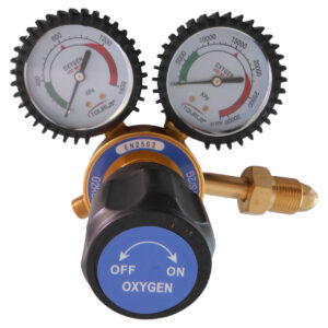 The primary function of a gas regulator is to reduce high-pressure gas in a cylinder or process line to a lower, more usable level. A regulator is not a flow control device. It is used to control delivery pressure only. It has two gauges, one to measure the inlet pressure and the other to measure the outlet delivery pressure.