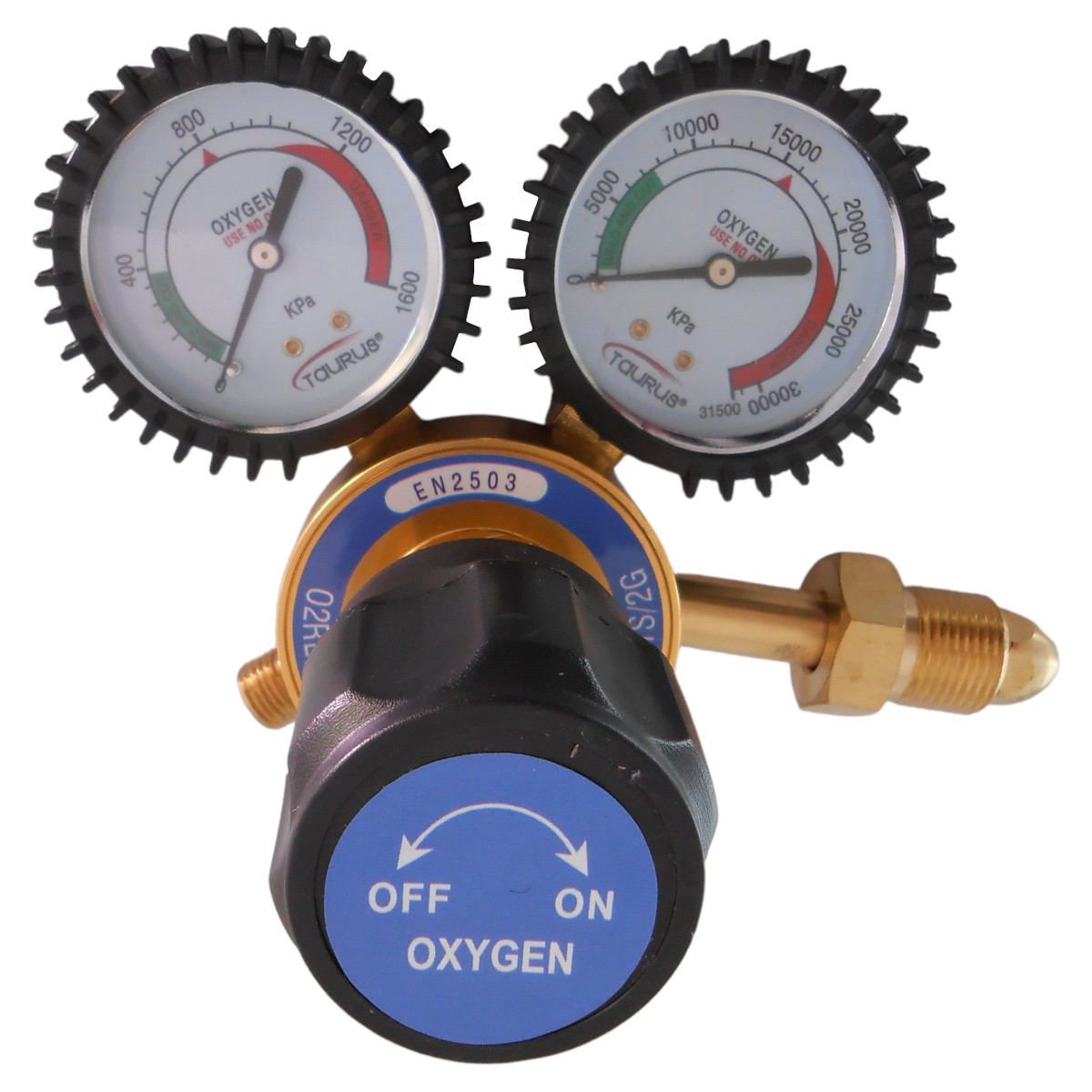 The Taurus double-stage regulator is designed to lower the high pressure gas from a gas cylinder to a usable outlet pressure in two stages. It requires less readjustment and provides a more constant delivery pressure despite changes in inlet pressure. It is exceptionally well suited for high-pressure cylinder applications and where stable outlet pressure is important. The regulator is fitted with two gauges, one to measure the inlet pressure and the other for measuring the outlet delivery pressure.